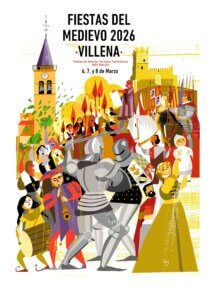 El cartel, presentado bajo el lema “Historias de la historia”, plasma de manera ilustrada los momentos más emblemáticos de estas fiestas. Tal y como describe el autor: “Uno de los actos más esperados es la procesión de antorchas, en la que cientos de personas recorren las calles al ritmo de tambores y chirimías, creando una atmósfera mágica de fuego purificador que envuelve al barrio en un aura de leyenda. La tradicional batalla de las lechugas aporta un marcado componente de crítica social: en ella, las verduleras se enfrentan a los recaudadores de impuestos en una contienda campal que implica activamente al público. La llegada de los Reyes Católicos y el pregón oficial constituyen otro punto culminante de las fiestas evocando el poder real sobre la villa. A continuación, la presentación de los infantes se convierte en un emotivo momento intergeneracional que da paso a las justas entre caballeros, representación simbólica de la batalla de 1476. El repique de las campanas de la iglesia de Santa María marca el desenlace la celebración, rememorando la sublevación de la villa contra el marqués cerrando con fuerza un programa que combina historia, participación ciudadana y espectáculo.”
