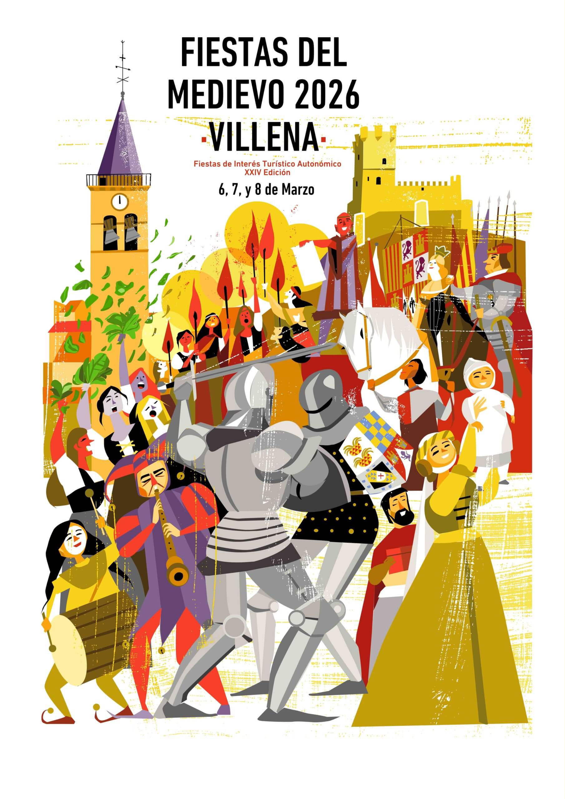 Jaume Gubianas, natural de Navàs (Barcelona), se ha alzado con el premio al cartel anunciador de la XXIV edición de las Fiestas del Medievo 2026, con una propuesta de gran fuerza narrativa y visual que recoge los principales episodios históricos y festivos que han marcado la identidad de las Fiestas del Medievo.