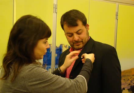 Flaquer recibe la primera insignia con el actual escudo de la población, aprobado hace unos meses por la Corporación municipal.