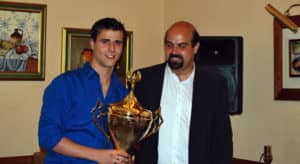 El concejal de Deportes, José Tomás Peralta, entregaba el premio al mejor jugador del V- 74. Jerónimo Rubio. El premio para el mejor jugador promesa era para Gonzalo Hernández, quien le hacía entrega del galardón el presidente del V- 74 y la mejor jugadora promesa, ha sido Victoria Flor.