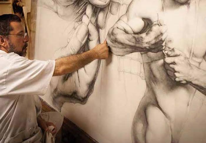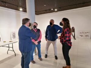 El artista expresó su satisfacción por presentar su exposición en Villena donde recordó que siempre ha estado en muestras colectivas, pero nunca a título individual, que ha participado como jurado de premios, y donde mantiene una buena relación con muchos amigos. “Esta exposición es motivo de alegría, porque acerca la obra al gran público de Villena. Es una muestra retrospectiva que parte de los originales hacia una obra seriada, que yo intervengo y que la ponga a la altura de un original”, explicó el artista.