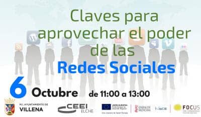 El jueves día 6,  de 11h a 13 h,  se impartirá la charla “EL PODER DE LAS REDES SOCIALES”, en la Calle El Hilo, 26, en Villena.
