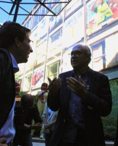 José Miguel Esquembre Menor, ex-Presidente Nacional de Arquitectura Sin Fronteras, fue invitado al acto junto a otros presidentes históricos de la organización y personas responsables y voluntarias. Esquembre tuvo la oportunidad de explicar y proponer al Alcalde de Madrid, D. José Luis Martínez – Almeida que asistió junto a otras autoridades de la Comunidad de Madrid y del Ministerio de Transportes, Movilidad y Agenda Urbana, a la inauguración del evento, la realización de un proyecto que actualmente viene realizando la ONG en Alicante, concretamente el programa “Asertos” (Premio Fundación “La Caixa” de Innovación Social en el año 2023). “Nos gustaría valorar con usted, la posibilidad de implantar éste programa Asertos en Madrid, programa que tiene como objetivo, regenerar de forma comunitaria, barrios vulnerados de la Comunidad Valenciana”, comentó el arquitecto Esquembre, al Sr. Almeida.