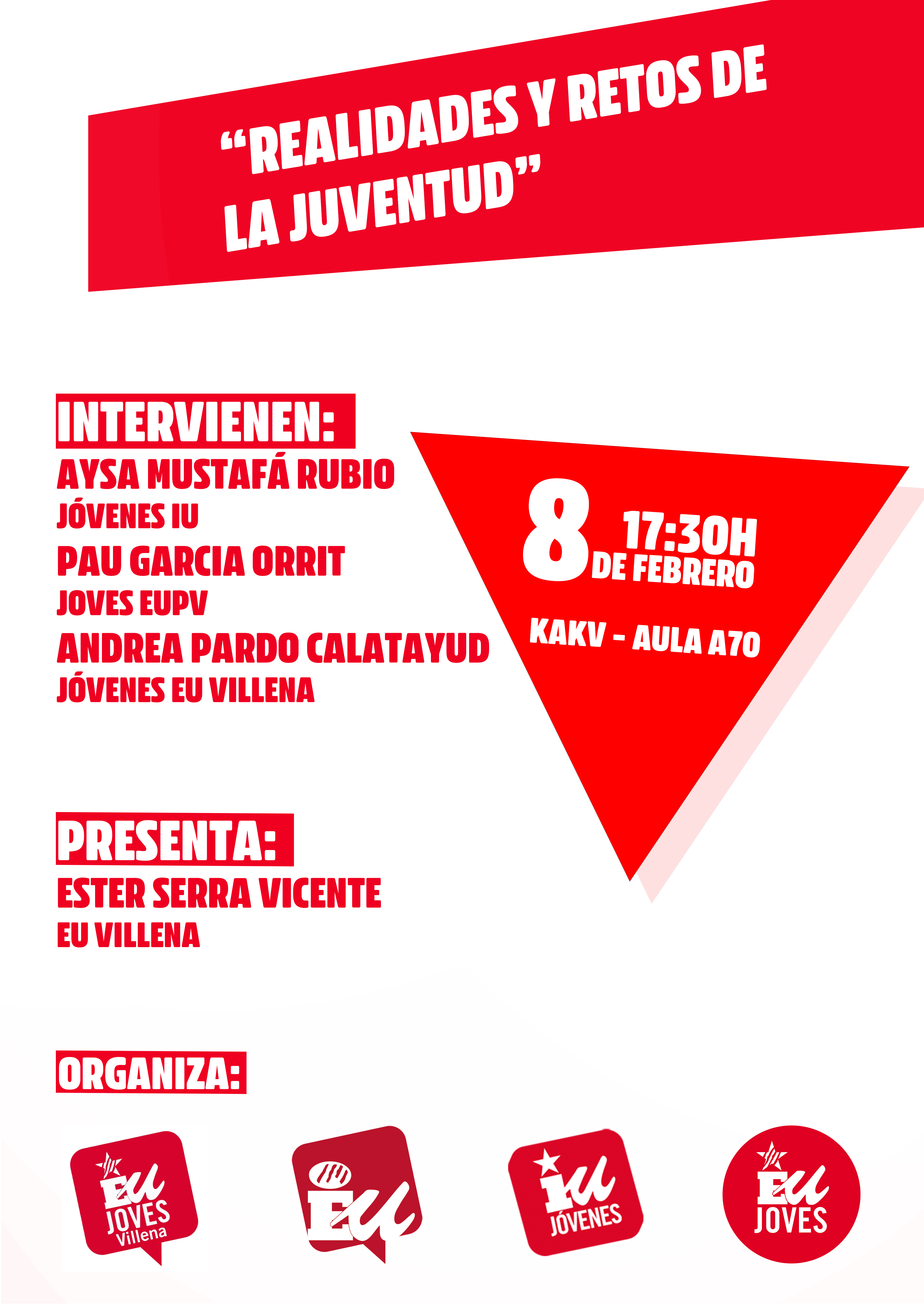 Este acto está organizado por Jóvenes de IU Villena, pero también co-organizado por el colectivo de IU Villena, Jóvenes de Izquierda Unida y Joves EUPV.