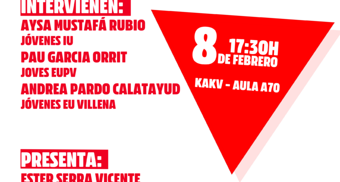 Este acto está organizado por Jóvenes de IU Villena, pero también co-organizado por el colectivo de IU Villena, Jóvenes de Izquierda Unida y Joves EUPV.