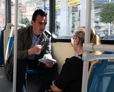 En el día de ayer, Juan Richart, candidato a la alcaldía por Villena Centro Democrático, quiso acercarse a los usuarios del autobús urbano para explicarles personalmente la medida que VCD implantará si gobierna a partir del 22 de mayo: “la gratuidad del autobús urbano”.