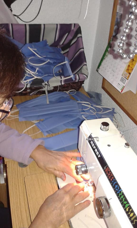 En algunas casas de Villena de personas jubiladas o pertenecientes a AMYS (Asociación mujeres y Salud de Villena) están cosiendo mascarillas para nuestros servicios sanitarios.