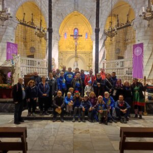 Otro grupo de socios de nuestra asociación se desplazó hasta el Santuario de Ntra. Sra. de Gracia de Biar para dar la bienvenida a los miembros de la asociación Amigos del Camino de Santiago de Alicante y realizar conjuntamente la etapa entre Biar y Villena, que es una etapa del ramal central del camino del sureste que consta de unos 13 km. Después de una visita al santuario, comenzamos la etapa bajando hasta el paseo del Plátano, pasamos por la plaza del Ayuntamiento y salimos de la población de Biar por el arco de San Roque y puerta de Játiva para coger la vía verde por donde transitaba el tren llamado “Chicharra”, cruzamos el rio Vinalopó por el puente de Hierro y entramos a Villena por el barrio San Francisco. Cuando llegamos a Villena nos dirigimos al museo de Villena, MUVI, para realizar la visita guiada al Tesoro de Villena, con el añadido de poder disfrutar de las explicaciones de nuestro socio Enrique Doménech, como testigo del hallazgo del “Tesoro de Villena” en la Rambla del Panadero en el año 1963. Para los peregrinos de Alicante también fue un gran descubrimiento conocer el rico y excepcional tesoro de Villena y su gran importancia histórica.