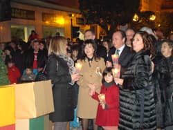 Al llegar al árbol de los deseos en el cruce entre la calle Corredera y Joaquín M López esperaba a la comitiva de duendes y niños, el presidente de la Diputación Provincial, José Joaquin Ripoll y la alcaldesa de la ciudad, Celia Lledó. Ellos eran los encargados de encender la iluminación navideña. En una calle repleta de niños y padres que acudieron a la llamada de la Asociación de Comerciantes.