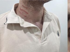 Cuando los funcionarios se aproximan a él para tranquilizarlo, este coge una silla de plástico que la Dirección del Centro les coloca para que estén cómodos realizando la llamada y les golpea con una silla en la cabeza a los dos Jefes de Servicio que en ese momento intentaban dialogar con él. La silla con la que arremetió en la cabeza a los funcionarios impactó, por suerte, en los brazos al cubrirse estos pero quedó hecha añicos por la virulencia de los golpes que le daba. Como consecuencia de estos golpes, los funcionarios acabaron con poli-traumatismo en los antebrazos y un Jefe con un corte en un dedo por lo que tuvieron que ser asistidos en la enfermería del Centro.