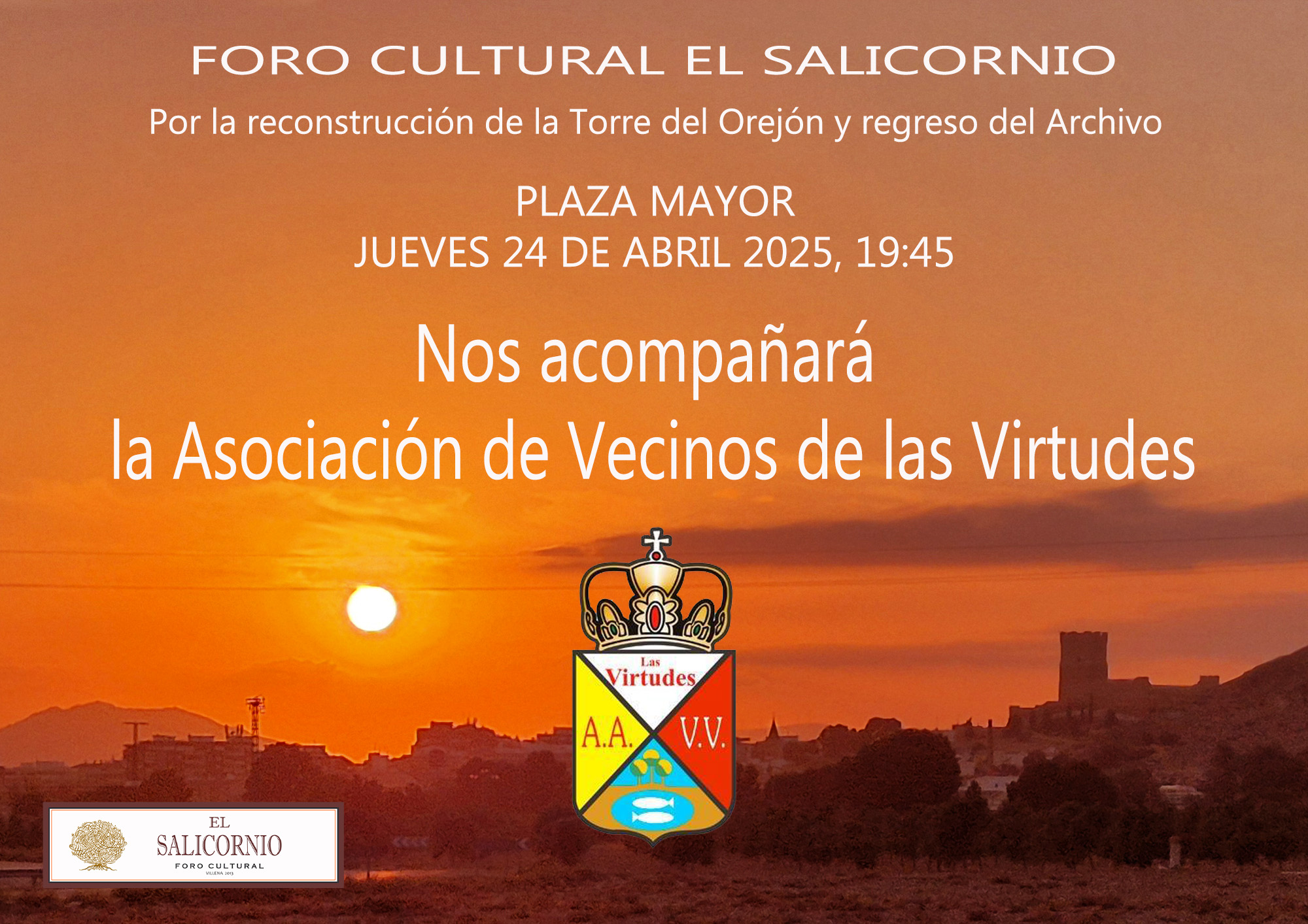 Os invitamos al encuentro festivo popular para reivindicar al Ayuntamiento la construcción de la torre con su Orejón, y que vuelva el Archivo Municipal. En esta ocasión nos acompañará la Asociación de Vecinos de las Virtudes.