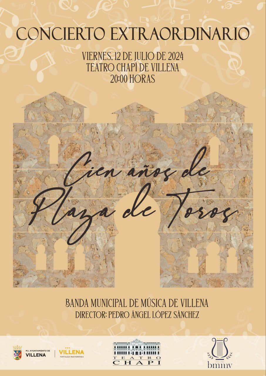 La Banda Municipal de Villena realizará un concierto extraordinario en el Teatro Chapi para conmemorar el centenario de la construcción de la Plaza de Toros de la ciudad.