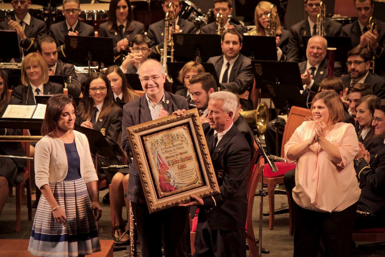 Y ya casi al final del concierto, llegó un momento de esos de tener los sentimientos y emociones a flor de piel: el nombramiento de “Músico de honor de la Banda Municipal de Música de Villena”.