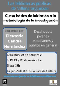 La Biblioteca de Villena organiza el primer Curso básico de iniciación a la metodología de la investigación