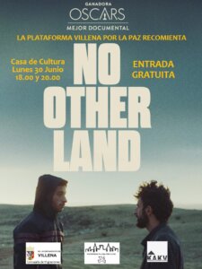 Tenemos en Villena una oportunidad para conocer la realidad de la ocupación de Palestina acudiendo a una actividad organizada por la Concejalía de Migraciones, como es la presentación de la película documental “NO OTHER LAND” (Oscar al mejor largometraje documental este año) que se proyectará el lunes 30 de Junio en la Casa de Cultura y que muestra la resistencia y la realidad de violencia que sufre la población palestina en Cisjordania por las agresiones de colonos israelíes.