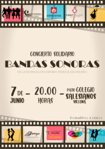 El próximo viernes 7 de Junio de 2019 en el Patio del Colegio Salesiano se realizará el Concierto Solidario de Bandas Sonoras a beneficio del Proyecto de Atención Educativa que nuestra casa está llevando a cabo durante hace unos años y que se engloba dentro de los diferentes proyectos de la Fundación Iniciativa Solidaria Ángel Tomás (FISAT).