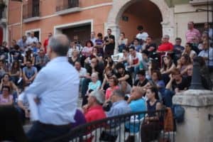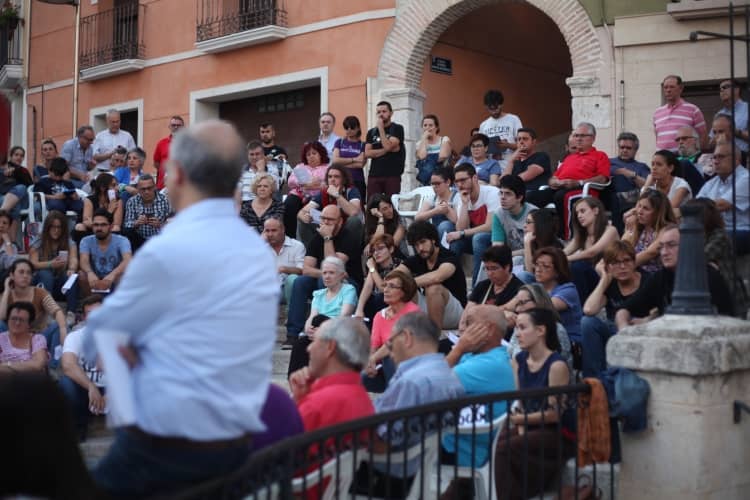 Anoche, en la Plaza Mayor, se realizó la Asamblea organizada por la Coalición política formada por Podemos, Izquierda Unida y Compromís -con la adhesión a esta última de Los Verdes de Europa. Asamblea de Villena-.