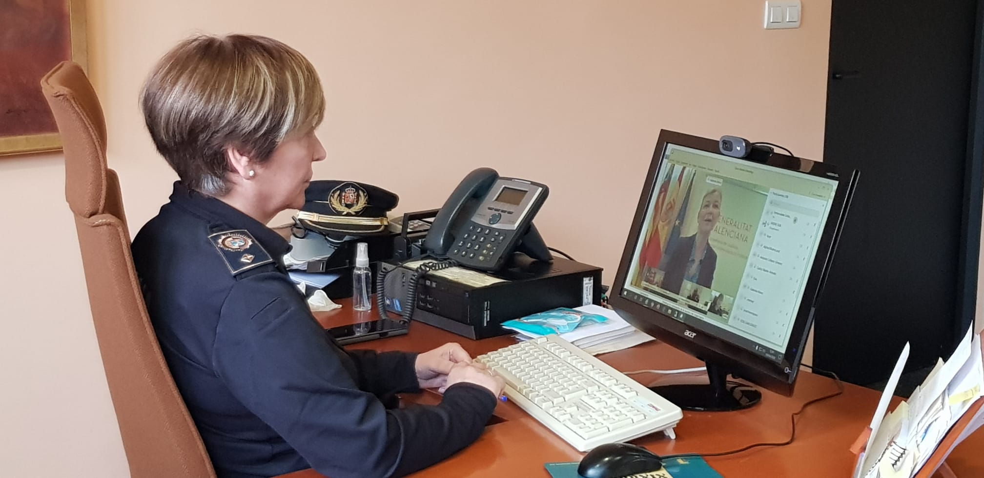 La Comisaria Jefa de la Policía Local de Villena, Inmaculada Soriano participó ayer en una reunión de Coordinación de los Cuerpos de Policía Local de la Comunitat Valenciana celebrada mediante videoconferencia. Este encuentro virtual fue convocado por la Consellera de Justicia, Gabriela Bravo, y en él participaron varios Jefes de Policía Local como los de Alicante, Valencia y Castellón.
