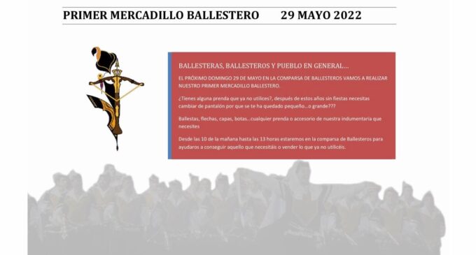 El próximo domingo día 29 de mayo la Comparsa de Ballesteros va a realizar en su sede social un mercadillo de compra-venta y cesión de prendas ballesteras, con el fin de que los socios y la ex socios, puedan beneficiarse.