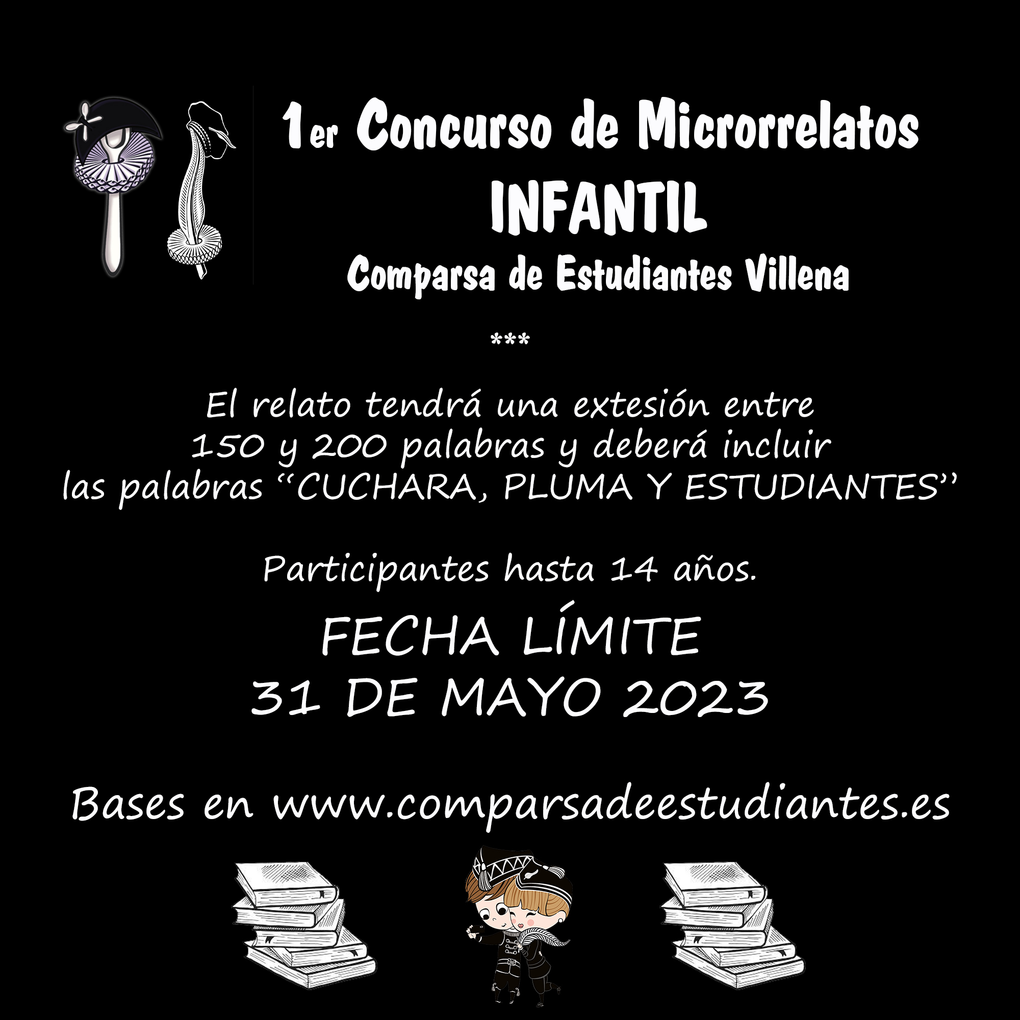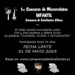 La Comparsa de Estudiantes de Villena convoca, con motivo de su interés en fomentar la cultura festera entre todas las edades, el I Concurso de microrrelatos Infantil 2023.