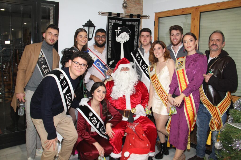 La tarde nos trajo el momento de los más pequeños de la comparsa. Son ellos a los que tenemos que cuidar, pues son el futuro. A pesar del fútbol, que tuvo a más de uno pegado al móvil (antaño era el transistor), en la Troyica se vivió un rato de mucha ilusión por la visita a nuestra sede de Papá Noel, el cual trajo consigo su saco lleno de dulces para los niños que le esperaron impacientemente. Nos acompañaron los cargos de las otras comparsas que no dudaron en sacarse una foto con el señor Noel, al igual que todos los niños Estudiantes que acudieron. Después de la emoción y de despedir a Papá Noel, todos, mayores incluidos, disfrutaron de pizzas y croissants de chocolate para terminar un fin de semana inolvidable e ilusionante.