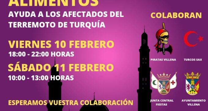 La Comparsa de Piratas en solidaridad con los afectados del terremoto de Turquia, promueve una recogida de alimentos no perecederos y productos de higiene en colaboración con la Junta Central de Fiestas y el Ayuntamiento de Villena.