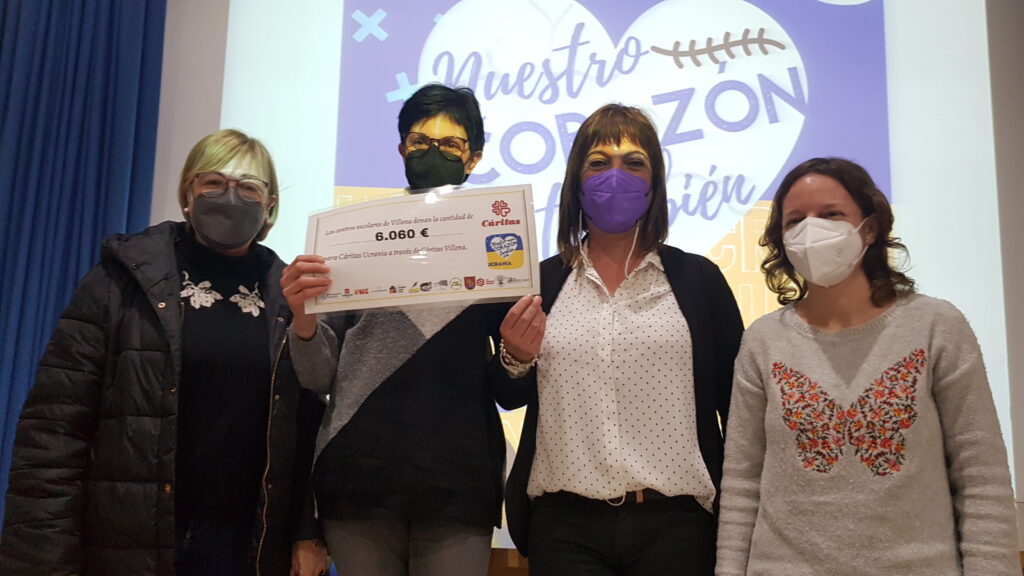 La comunidad educativa de Villena- colegios, institutos y familias- ha entregado a Cáritas 6.060 euros para Ucrania. Tal y como ha comentado la representante de la entidad en Villena, Isabel López, el dinero se hará llegar directamente a los campamentos de refugiados que existen en Polonia, Rumania o Moldavia. Asimismo, ha explicado que Cáritas no recoge material humanitario como ropa o comida, puesto que al tener representación en estos países el dinero se envía directamente al lugar donde se ha producido una emergencia, “ya que es más efectivo y más seguro que enviar una caravana de ayuda”.