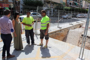 La nueva concejala de Ciclo del Agua, Mercedes Menor, ha visitado la obra de canalización de pluviales e imbornales que la Diputación de Alicante está ejecutando en Avenida Constitución y María Auxiliadora enmarcada en un proyecto para solucionar los problemas derivados de las lluvias en la zona centro.