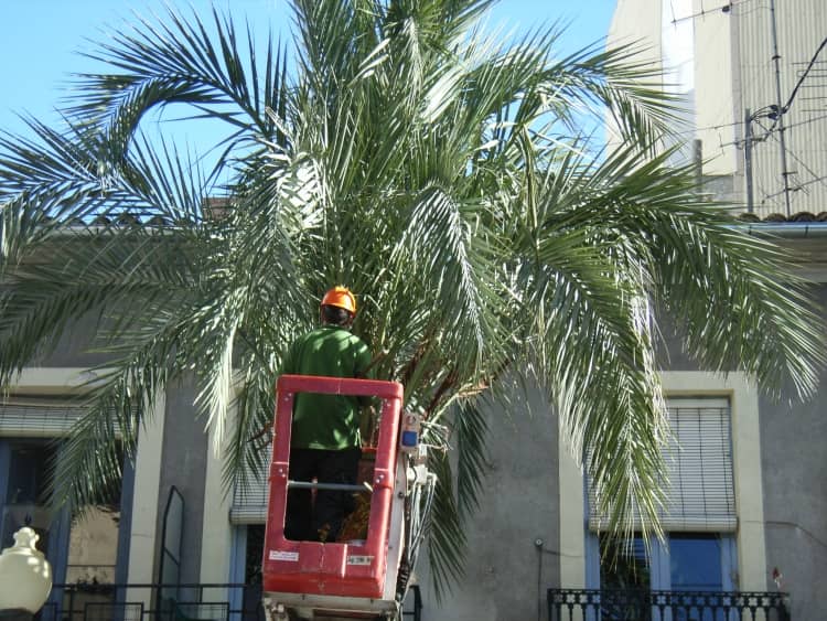 La concejalía de Medio Ambiente procede a la poda de palmeras