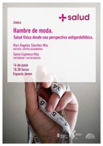La charla tratará sobre como la presión de la sociedad, los cánones de belleza establecidos y la presión de tener un cuerpo considerado como “normativo” tiene como consecuencia la aparición de diferentes patologías que afectan a la salud mental como son, los trastornos de la conducta alimentaria.