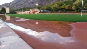 No obstante, el año pasado el concejal se comprometió a la realización del proyecto para la construcción de la nueva pista de atletismo, puesto que los jóvenes atletas deben de desplazarse a otras localidades cercanas para realizar las pruebas, al no estar homologada la existente en la localidad, que además, en días de lluvia está impracticable, puesto que se embalsa el agua e impide la práctica de pruebas atléticas.
