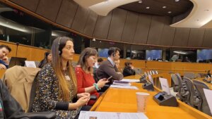 La coordinadora local de Izquierda Unida Villena Ester Serra en el Parlamento Europeo para defender los derechos humanos