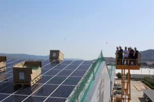 La comitiva ha comenzado con una visita a las obras en la que Luis Navarro ha explicado las características de esta instalación de 2’227Mwp de potencia con unas dimensiones similares a cuatro campos de fútbol. “Esta cubierta solar generará más de 4 millones de kwh al año, equivalentes al consumo eléctrico de 500 hogares” ha comentado Navarro. La actuación evitará la emisión de 1.480 toneladas de CO2 a la atmosfera, lo que corresponde a más de 130.000 árboles absorbiendo CO2.