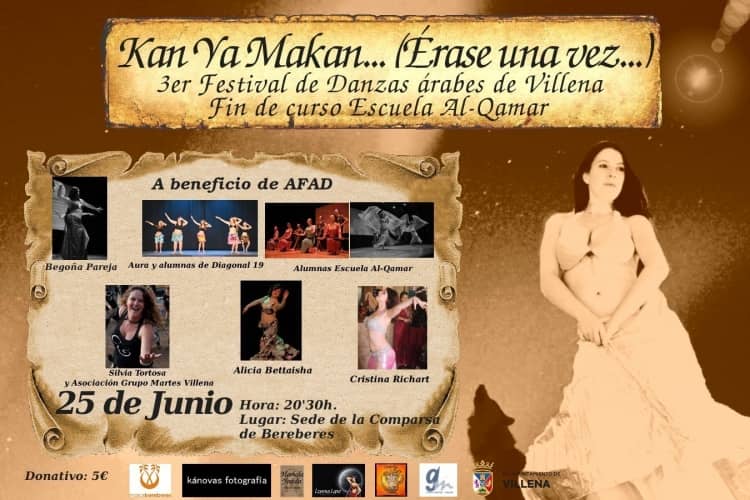 Este año, como los dos anteriores, tenemos el gusto de realizar nuestro espectáculo de fin de curso de la Escuela de danzas orientales Al-Qamar de Villena.