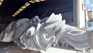 La obra efímera se está ultimando en el taller de su artista, Fran Santonja, ubicado en la pedanía alicantina de Bacarot, y empezará a salir a la calle en sus grandes volúmenes, a partir de las 00’00 horas del próximo día 17, iniciándose el proceso de plantà, que se prolongará hasta la noche del 20 de junio, antes de la visita de los diferentes jurados de la edición.