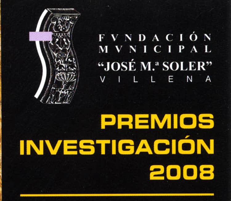 • – Entrega de los Premios de Investigación 2008 de la Fundación José María Soler y presentación del libro: “Origen y evolución de los adornos personales durante el Neolítico y el Eneolítico en la cubeta de Villena”, cuya autora es Virginia Barciela González, y es Premio de Investigación Modalidad Arqueología. Será presentado por por el profesor Mauro Hernández Pérez, catedrático de Arqueología de la Universidad de Alicante.