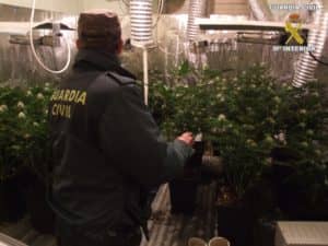 La Guardia Civil desmanteló ayer en Villena una plantación de marihuana ubicada en una vivienda del barrio de San Francisco.