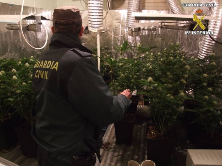 En una de las habitaciones de la vivienda se descubrió una plantación de marihuana, que contaba con los elementos necesarios para su explotación, y en la que fueron halladas e intervenidas hasta 34 plantas en diferentes fases de crecimiento. Asimismo, los agentes constatan que la electricidad utilizada en la plantación procedía de una toma de la escalera de la comunidad de vecinos.