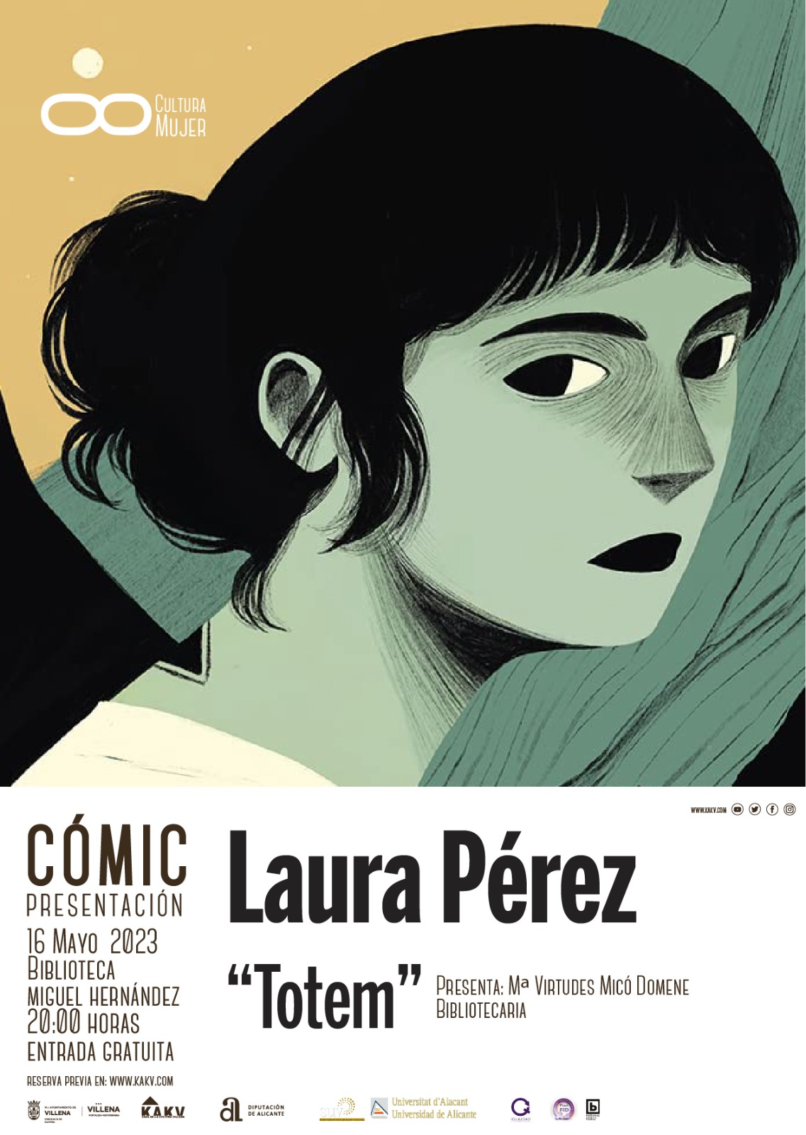 La ilustradora valenciana de prestigio internacional, Laura Pérez, presentará este próximo martes, 16 de mayo, en la Biblioteca Miguel Hernández de Villena su última obra editada en 2021, ‘Totem’, y explicará los entresijos del arte del dibujo para grandes entidades como los diarios generalistas de Estados Unidos o Disney. La cita se incluye dentro del ciclo ‘8 Cultura Mujer’ que lleva a cabo el área de Igualdad del Ayuntamiento, en colaboración con la Casa de la Cultura, la Sede Universitaria de la UA y las bibliotecas públicas de la ciudad.