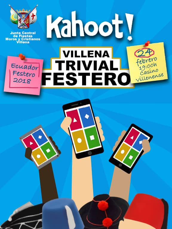 Para una mejor organización del concurso es recomendable realizar una preinscripción de la persona, escuadra o grupo participante. Para ello podéis enviar un email con vuestros datos y los de la escuadra, peña o comparsa a la que representáis a jcf.villena@gmail.com indicando en el asunto Concurso Kahoot Trivial Festero.