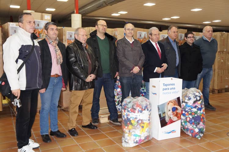 La Junta de la Virgen de Villena ha recogido casi tres toneladas de tapones de plástico, que servirán para ayudar a Martina Simón, una niña de Yecla con encefalopatía. Los tapones se entregaron al presidente de la Fundación SEUR, Ramón Mayo, entidad que gestiona la campaña de ayuda solidaria a personas con alguna enfermedad con dificultades para acceder al tratamiento necesario para su mejora, quien se desplazó al Mercado Municipal para su recepción.