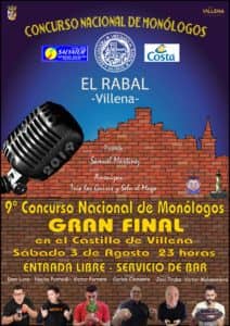 El próximo sábado 3 de agosto tendrá lugar la gran final del 9º Concurso Nacional de Monólogos El Rabal Villena.