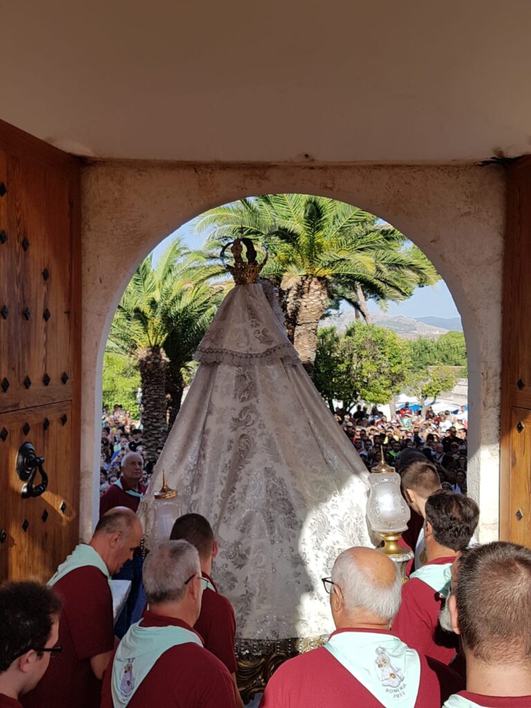 Como marca la tradición a las 6 de la tarde, la Sagrada Imagen hacía acto de presencia en la portalada del santuario y a los gritos de “Viva la Morenica” se ha iniciado la esperada romería.