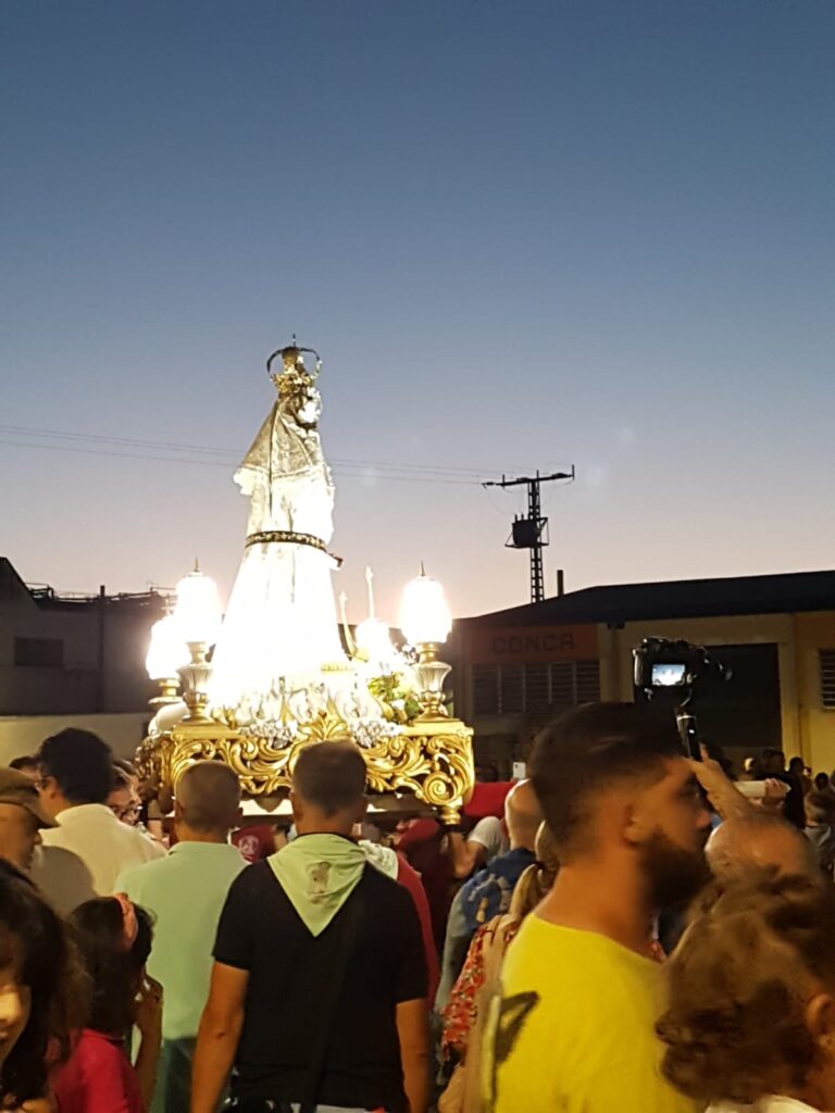Muchos han sido los villenenses que no han querido perderse este momento, acompañado por las salvas de arcabucería de la comparsa de Piratas. Así mismo, la Junta de la Virgen estima en ceca de 20.000 las personas que acompañarán a la patrona en el camino que va desde su santuario a la iglesia de Santiago.