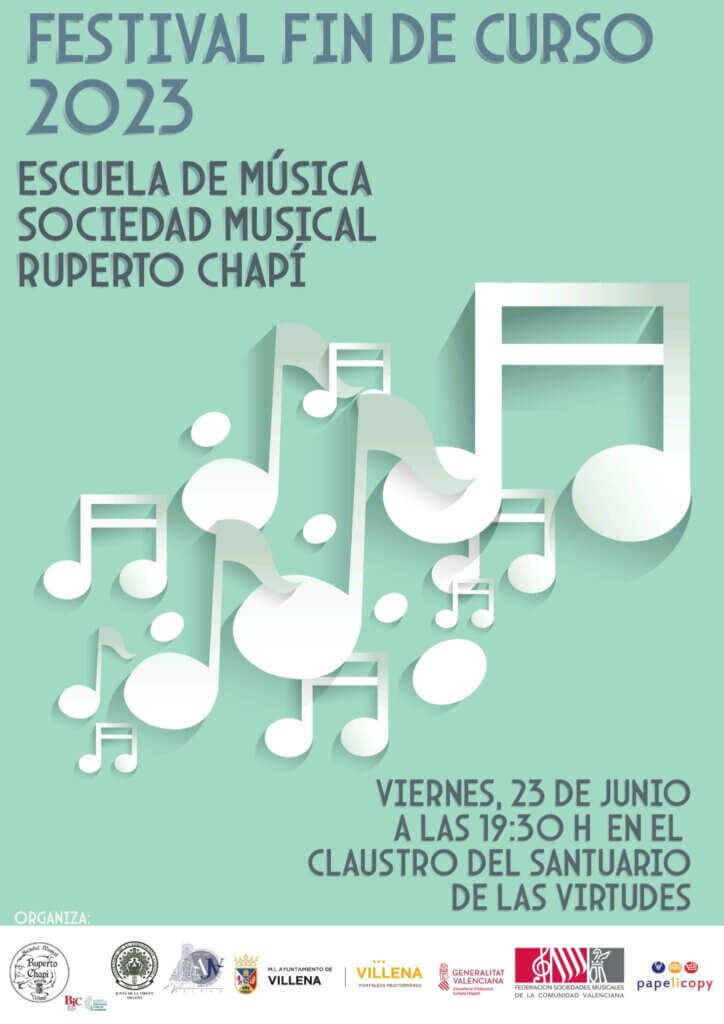 Un año más y de la mano de la Sociedad Musical Ruperto Chapí, se celebrará la Gala Festival Fin de Curso 2023. Esta será este próximo viernes, día 23 de junio a partir de las 19:30 horas con entrada libre.