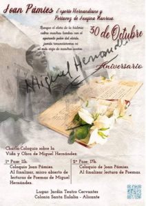 A las 11 h. se llevará a cabo una primera sesión, donde se realizará una charla coloquio con Joan Pámies, en la que a continuación se recitarán poemas de Miguel Hernández.