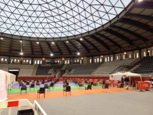 La plaza de toros de Villena continúa como vacunódromo, pero esta vez contra la gripe y para la tercera dosis de la vacuna contra la covid-19 para mayores de 70 años, a los que se le inoculó la segunda dosis hace más de seis meses.