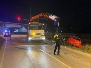Tras haber sufrido un accidente por salida de vía, el conductor trató de ausentarse del lugar al percatarse de la presencia policial y en menos de 300 metros sufrió de nuevo otra salida de vía provocando desperfectos graves en su vehículo.