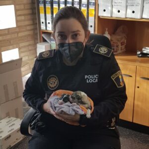 Los cachorros se hallaban casi sin vida y una de las agentes se ha ocupado de darles calor y mantenerlos vivos hasta que han sido recogidos por personal de la Protectora de Animales que se ha hecho cargo de ellos.