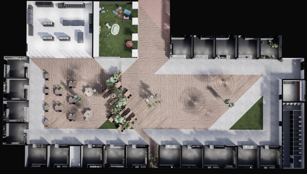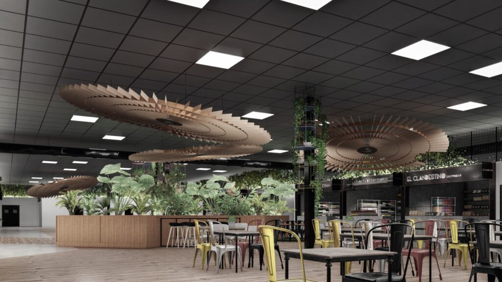 El diseño de la zona gastronómica variará notablemente, ya que se ubicará un elemento aéreo diferenciador basado en la pieza de oro de época Ibérica “La Arracada de La Condomina”. También se colocará un pavimento de madera, la creación de un pasillo continuo para facilitar el tránsito y la homologación de los establecimientos. Además, se habilitará una zona infantil y un espacio polivalente.